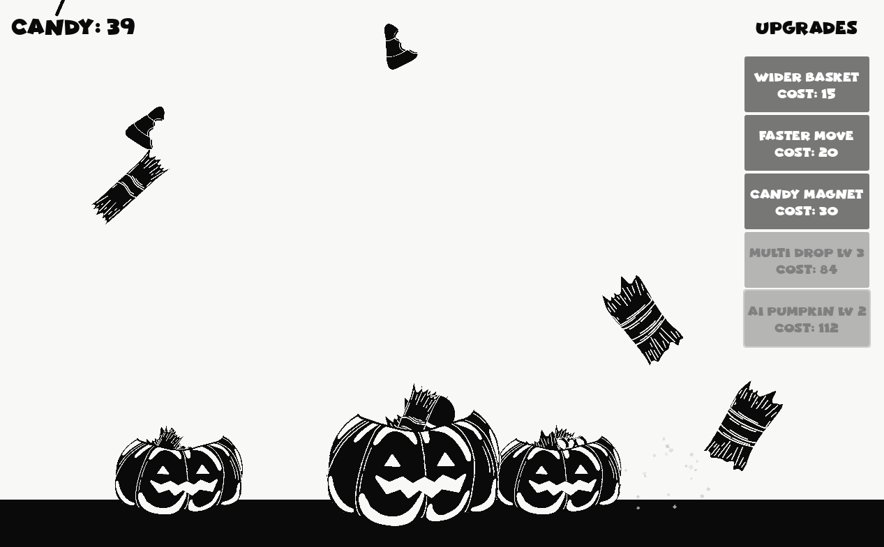 It's Halloween night and candy is raining from the sky! Control your trusty pumpkin basket to catch as much candy as you can in this fast-paced, black-and-white arcade experience.